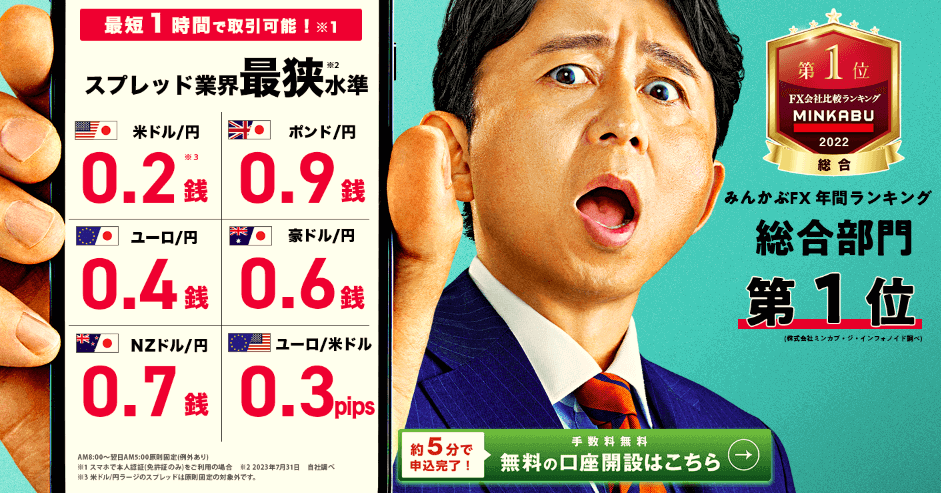 まずは少額で「お試し程度」にFXをやってみたい人に最もおすすめ。業界屈指の低コストも魅力の一つ。数百円から始められるため、心的ハードルも低く初心者にも優しいFX口座です。